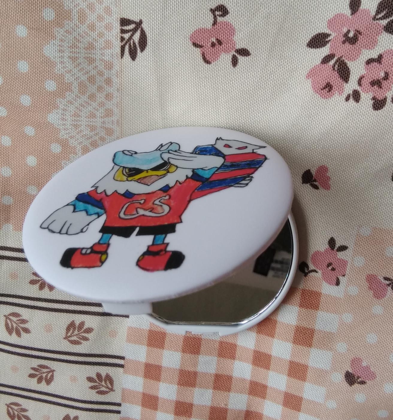 この可愛らしいコンパクトミラー、実はこの商品、私自身が描いたんです。 元絵は2枚目の写真で、自分...
