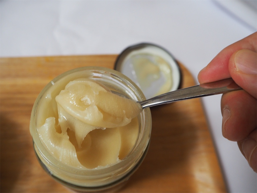 クリーム状なので口の中でゆっくりと溶かすように味わいたいはちみつです。