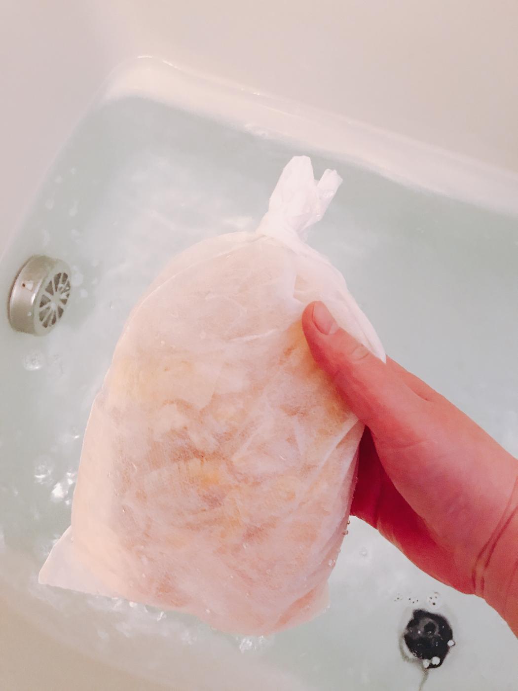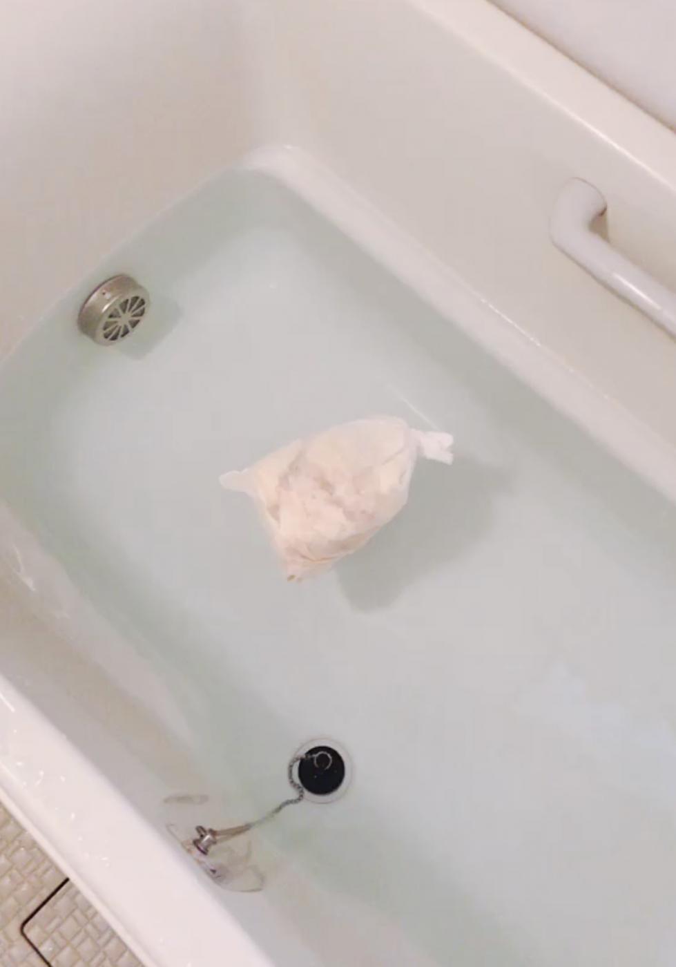 お湯をはった湯船に布袋ごとポンっと入れてお風呂に浸かってみました☺️?