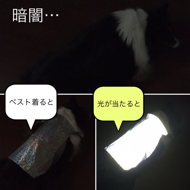 ●少しの光で強烈に反射するワンちゃん用ベスト。