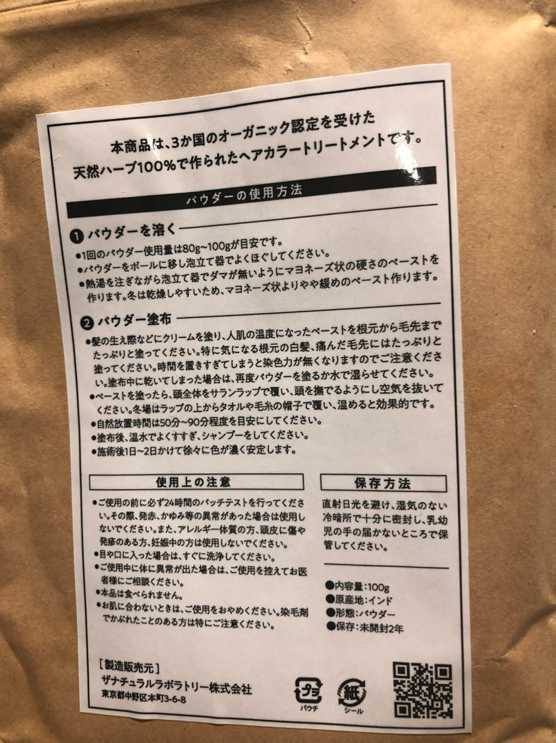 オーガニック認証を取得したというNOCヘナ