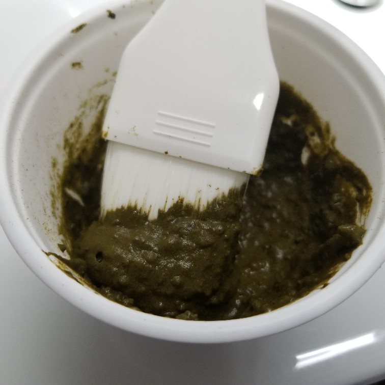 緑色のパウダーに熱湯をそそぎ、泡立て器でダマができないように、マヨネーズ位の固さまで練るとあったので、混ぜていましたが、お料理をしているかのようでした。