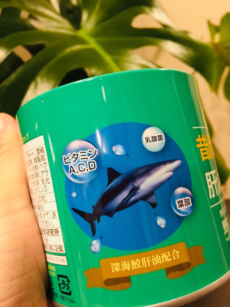 缶のパッケージも黄色から緑に、子供のお顔から野口さんに変わり、大人感あり!!成分は鮫肝油は勿論、便秘改善や免疫アップが期待出来る乳酸菌や、物忘れ予防で注目の葉酸も追加されています。缶の大きさの割には中身がぎっしり120粒詰まっています。1日3粒だとして1カ月以上もちます。お味の方は、、、何とオレンジ味!!!斬新でした!大人用用の方が甘くてオレンジ味で美味しい!!粒も少し小さめに、グミのような粘り気が、無く、表面はサクサク、口に入れるとすぐ溶ける感じになっています。個人的には昔の味、食感の方が好きですが、