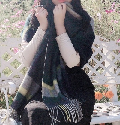 ふんわり肌触りなめらか♪チェック柄の大判ストール|モニター chaさん