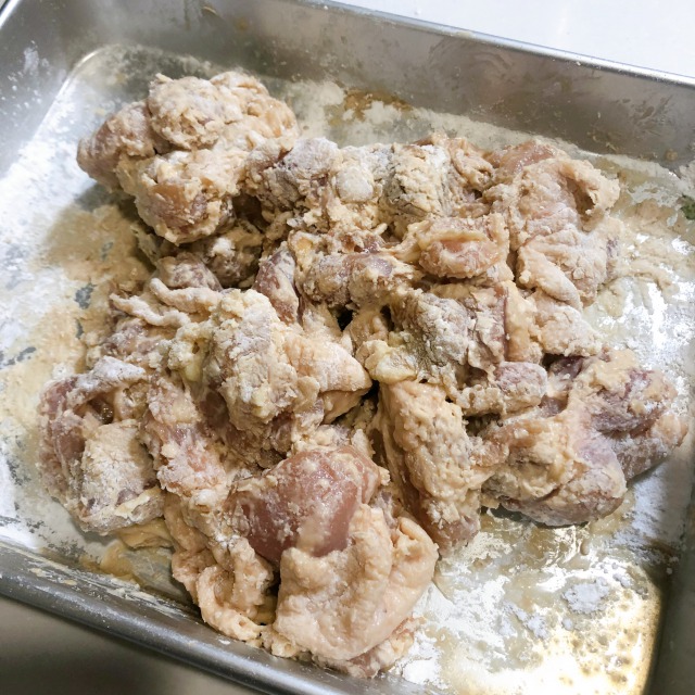 一口噛むと、衣のカリッカリ感がとても美味しい唐揚げができました!!!
