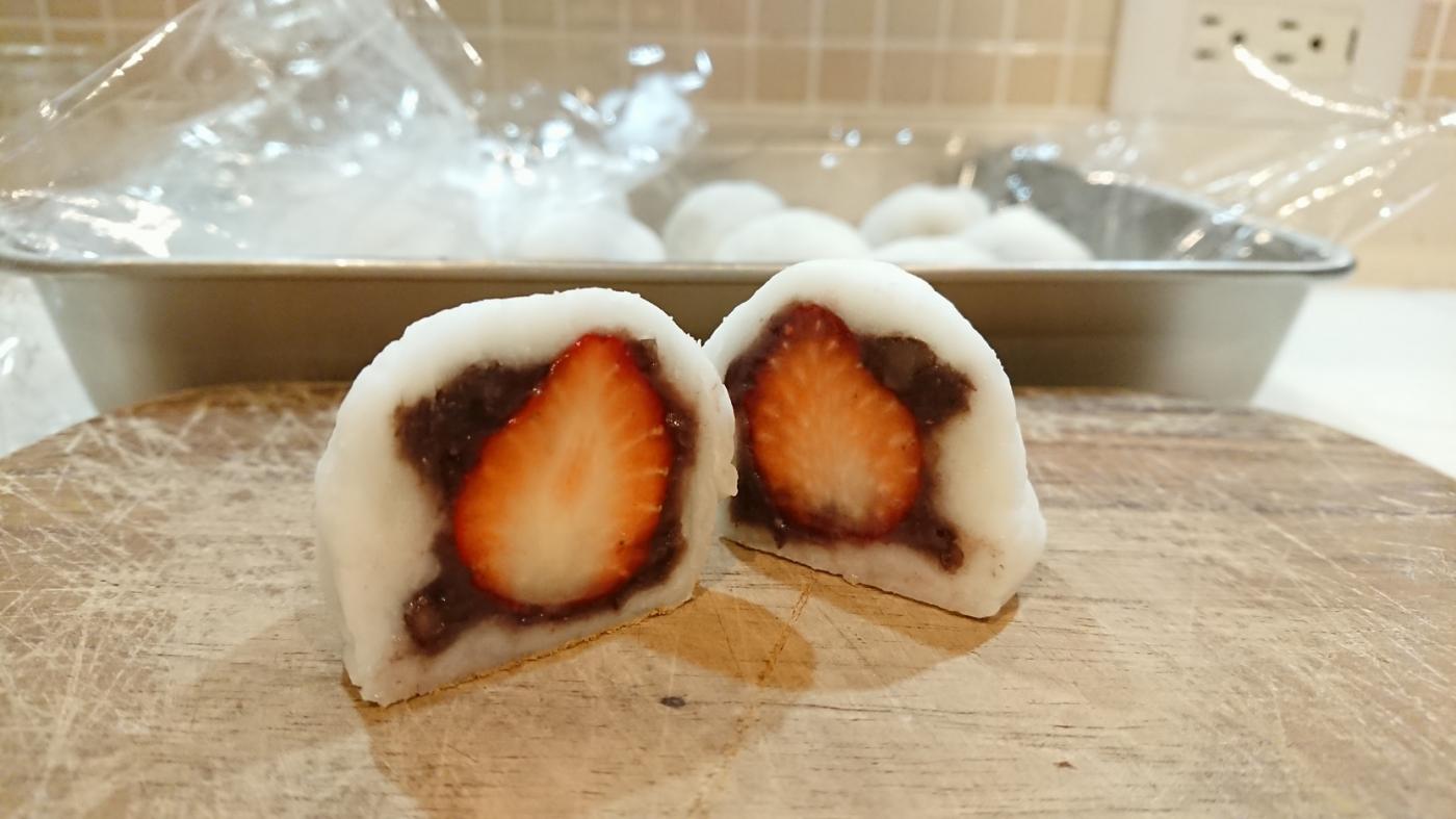 少し時間が経っていたからなのか、それともたっぷり使った片栗粉の影響なのか、生地が少し粉っぽく感じてしまいましたが、いちごがとっても引き立つ大福になっていました。