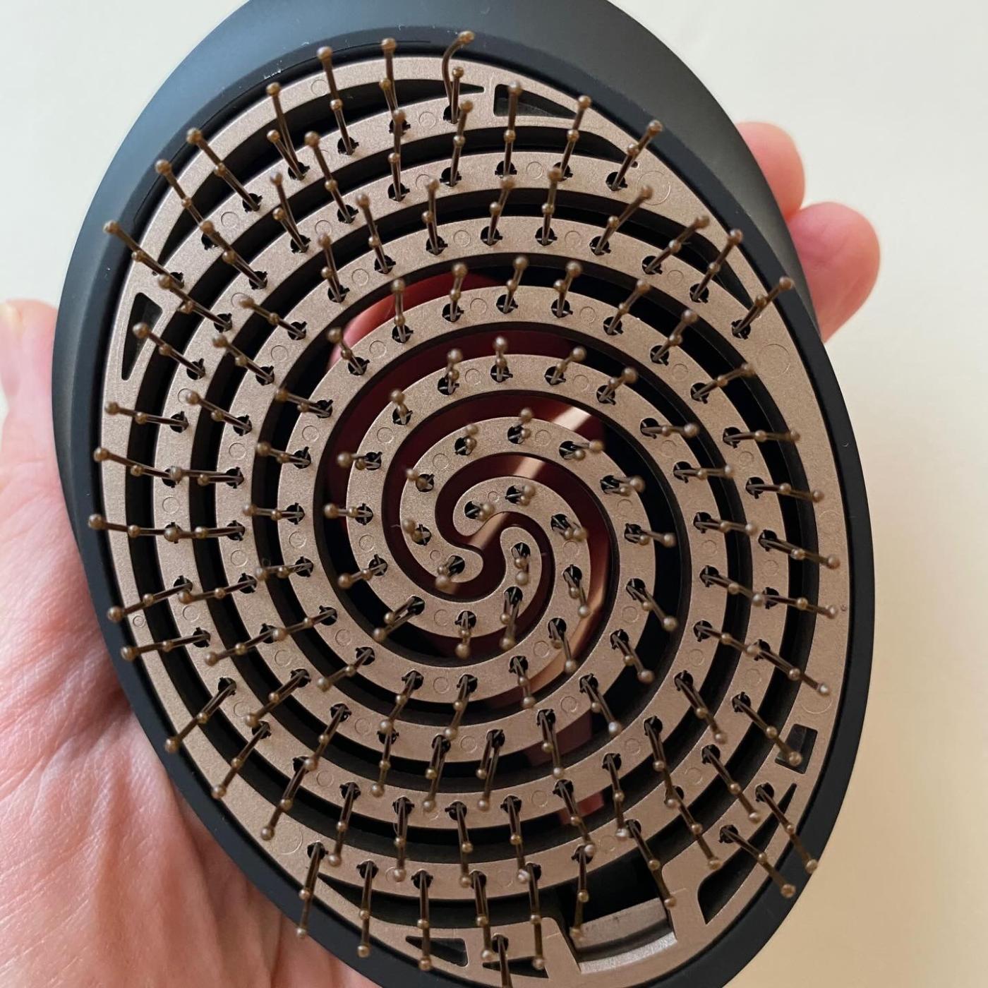 渦巻き状に配置されたブラシ面の不思議な形。 こちらは、 どんな髪質でもスムーズにブラッシングできる...