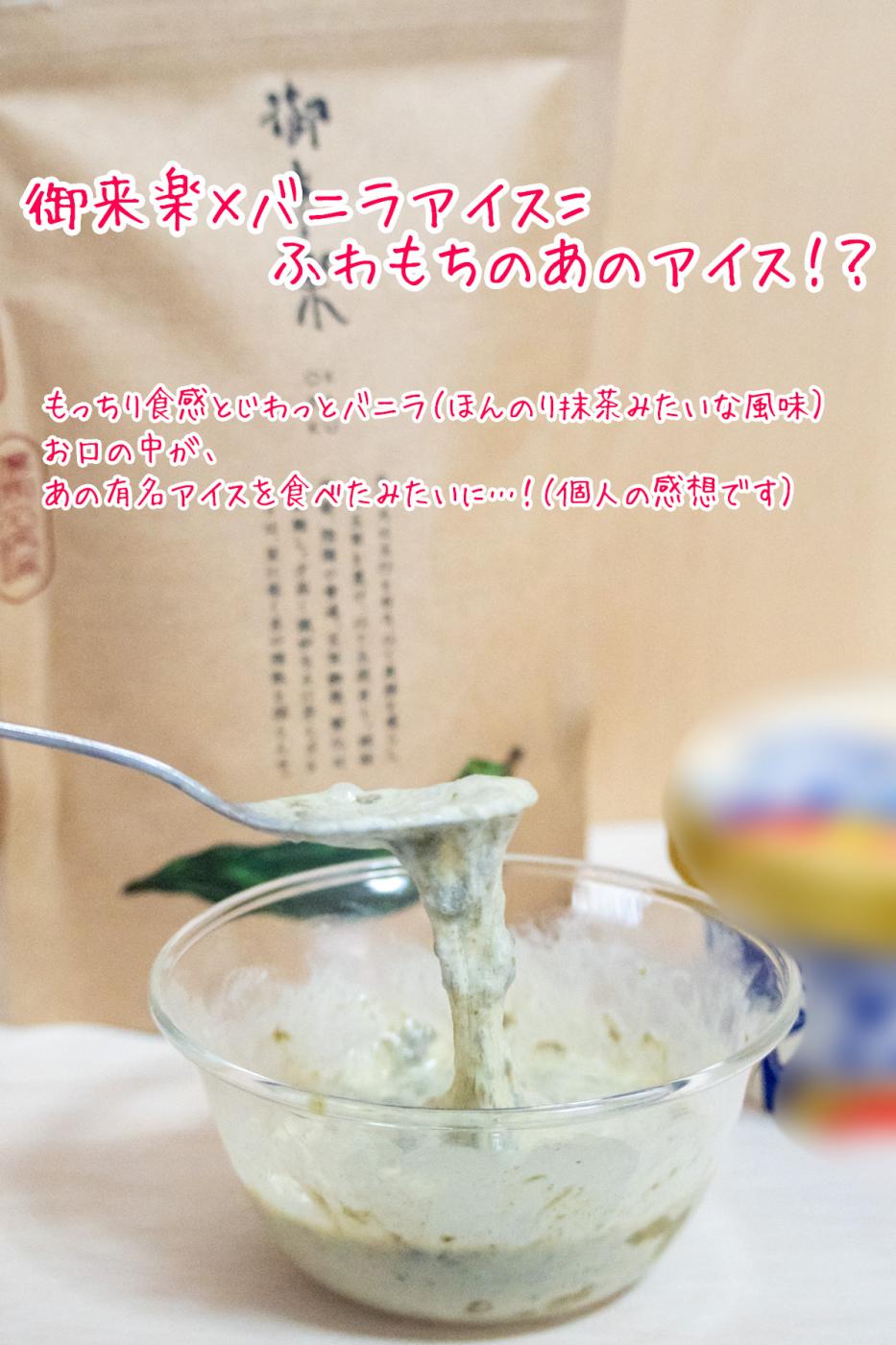 小さじ1杯で練り上げた御来楽(おくらく)の中に、どばぁっと4分の1くらいバニラアイスを投入。