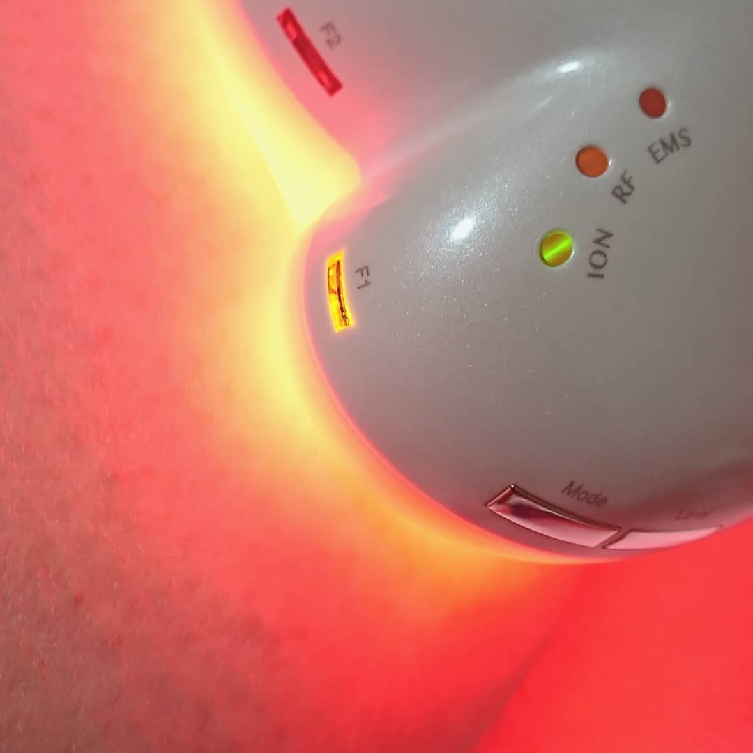 そのあと、スイッチをいれて、強弱の切り替えをして肌にあてていきます。