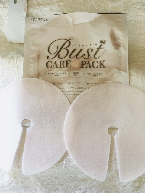 使い方は、円形のパックでバストを包み込みぐっと持ち上げるように貼り約20~30分肌にじっくりと成分を浸透させます、このタイプは初めて使用しましたがとっても使いやすいし、簡単でした、切り込みがありバストトップにかからないのもうれしい仕様です