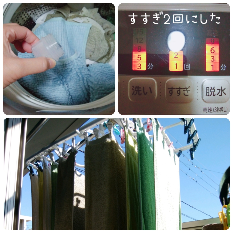 そればかり使っていたので現在洗濯洗剤のすすぎの回数がよくわからないのですが、ナースウォッシュランドリーでのすすぎの回数は2回にしています。