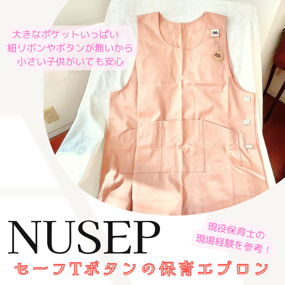 NUSEP セーフTボタンの保育エプロンはそんな私の希望にピッタリでした。