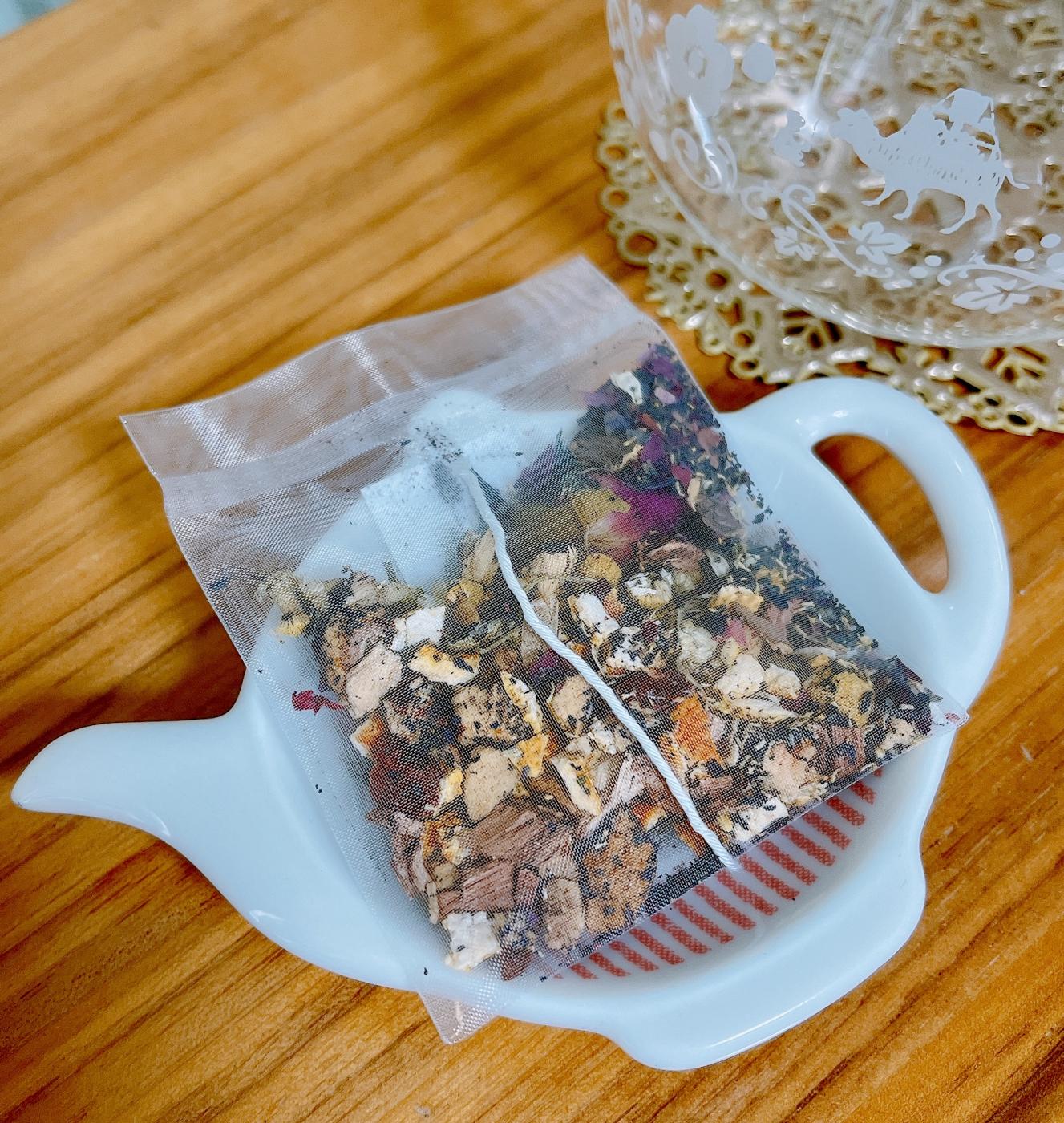 そして中にはティーバッグが4包入っています。こちらも、生薬の色がなんだかかわいらしい💐