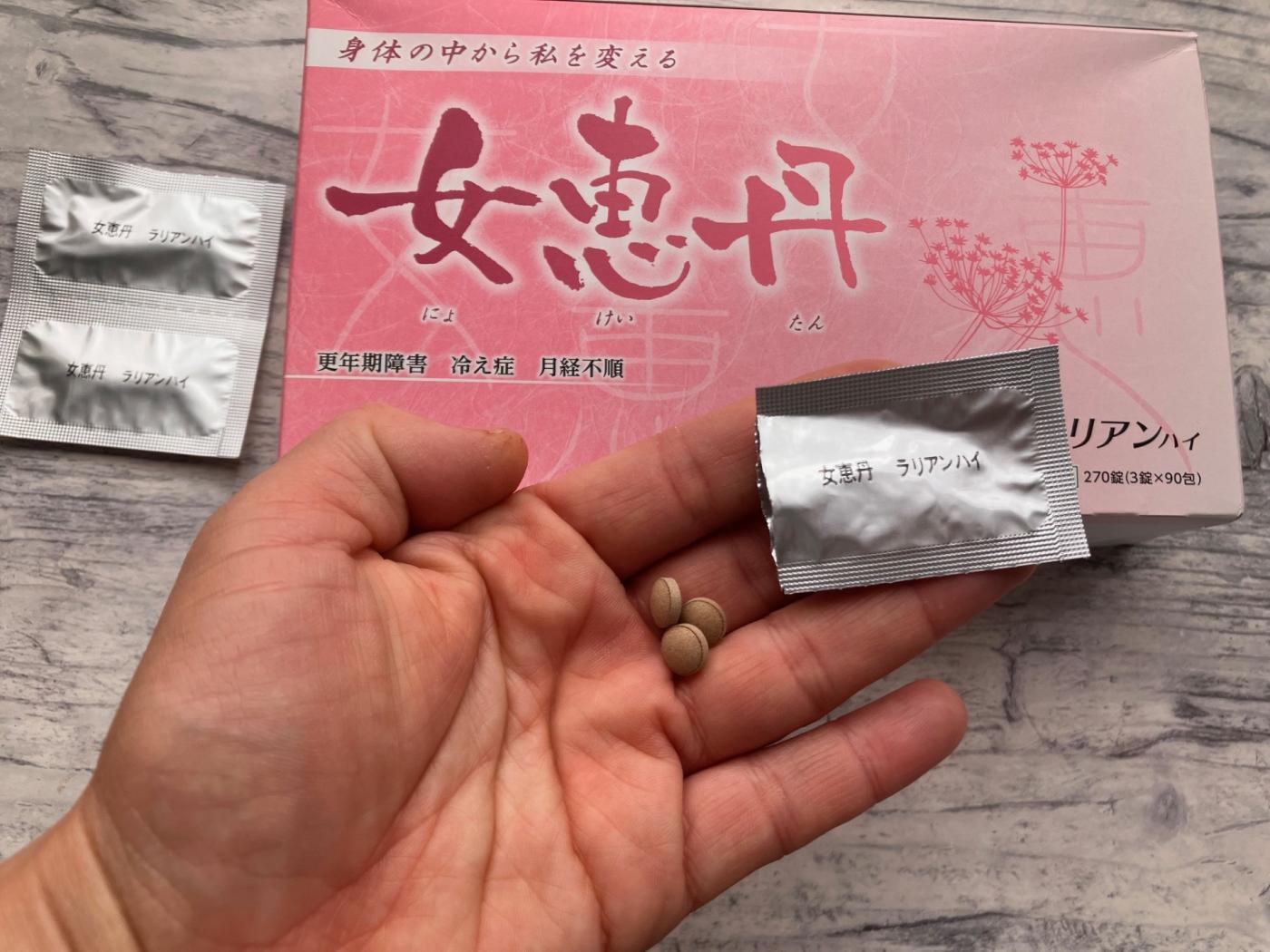 女恵丹は10種類の薬草がバランス良く配合されているそうですが、錠剤になっていることもあり、より一層漢方独特の味を強く感じることもなく服用できて、続けやすい製品になっているように思いました。