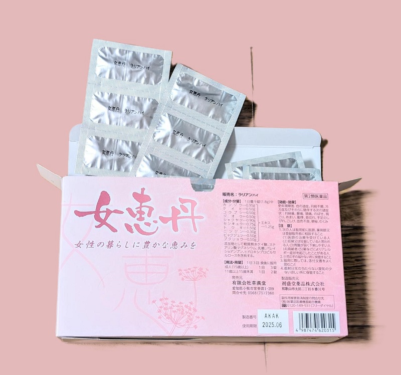 そのような症状を軽くできたらいいな、と思い応募した漢方薬局『草漢堂』さんの女恵丹(にょけいたん)。