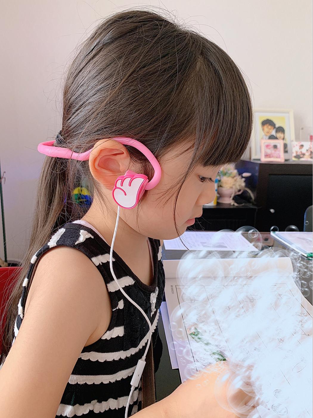 まだ娘が小さいこともあって今までイヤホンを付けさせるのに対抗があったのですがこちらのヘッドホンは骨伝導技術搭載で耳の穴に入れずに聞くことができるのが魅力的で。