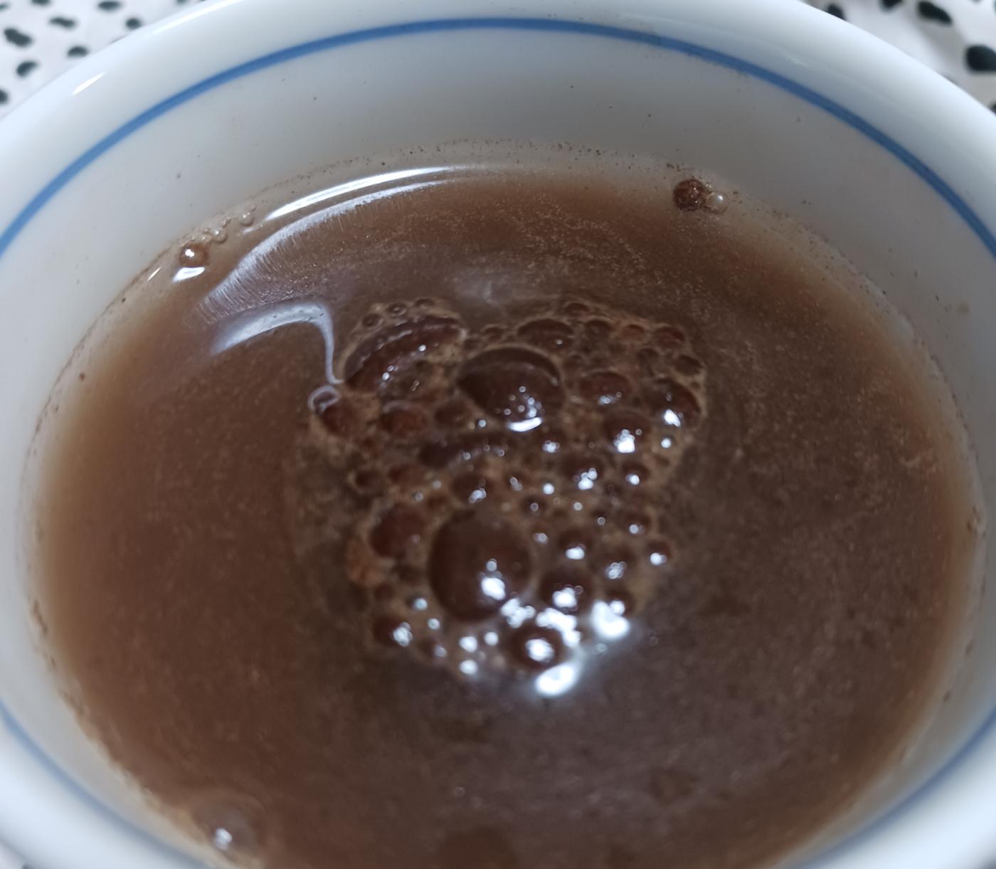 味は香ばしくてほんのり甘みもあり、とても飲みやすいです。クセがなく、毎日でも続けられる美味しさ。最初は水に溶かしてみたのですが、粉が少し残る感じがあったため、しっかり溶かしたい方にはお湯がおすすめです。お湯だと香りも立って、より一層リラックスできます。
