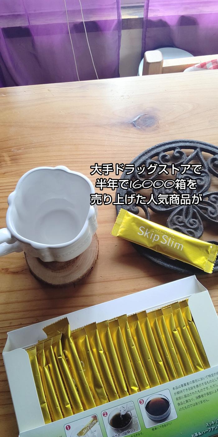 大手ドラッグストアで半年で16000箱も売り上げたというお墨付きの「skipslim」美味しいので続けられそうです。