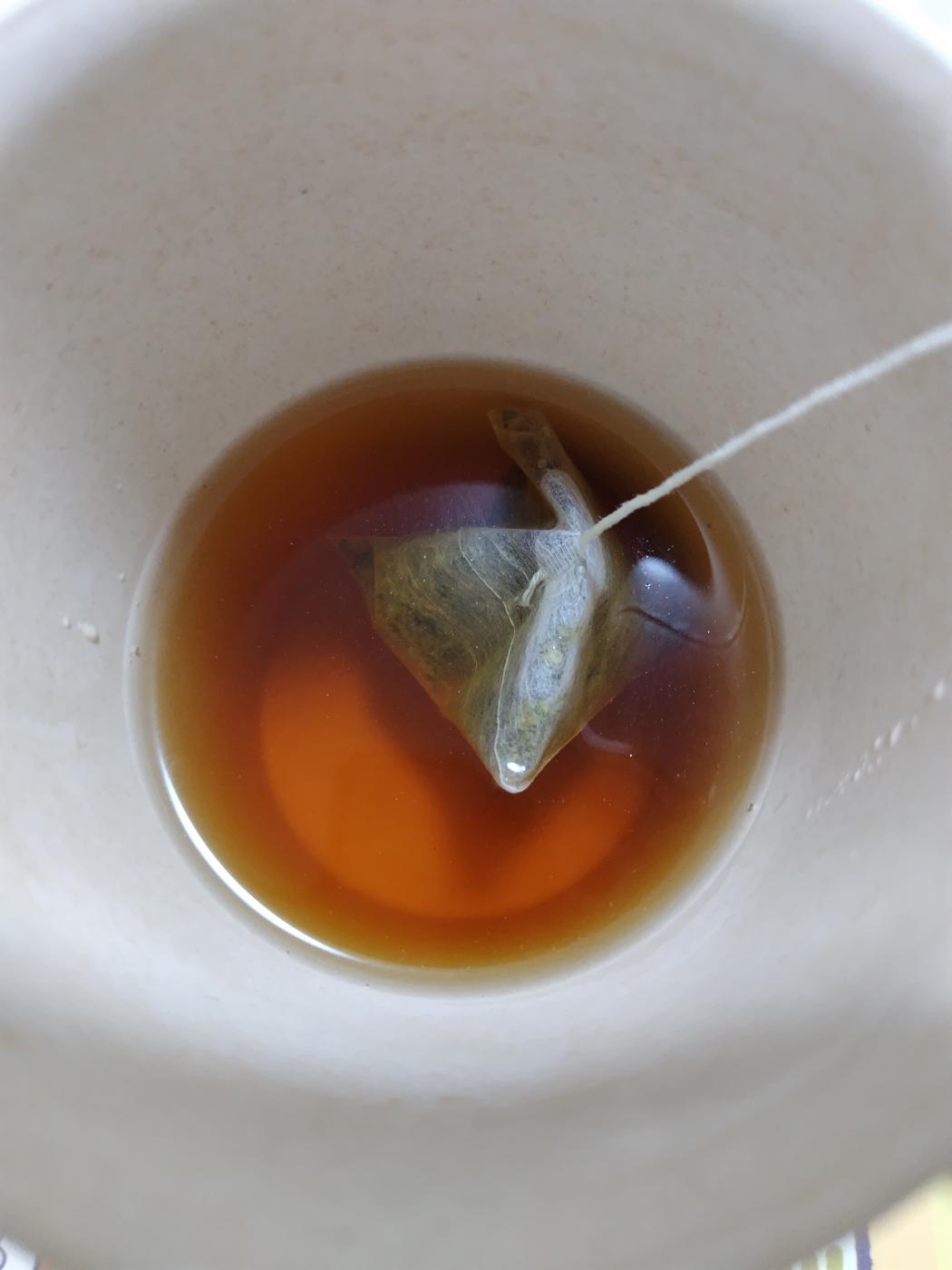 お湯やホットミルクを注ぐ前は、ティーバッグの紐が短めなので、しっかり抑えておかないとコップの中に落ちてしまいます。注ぐとだんだんティーバッグが浮いてくるので、紐の短さは気になりません。
