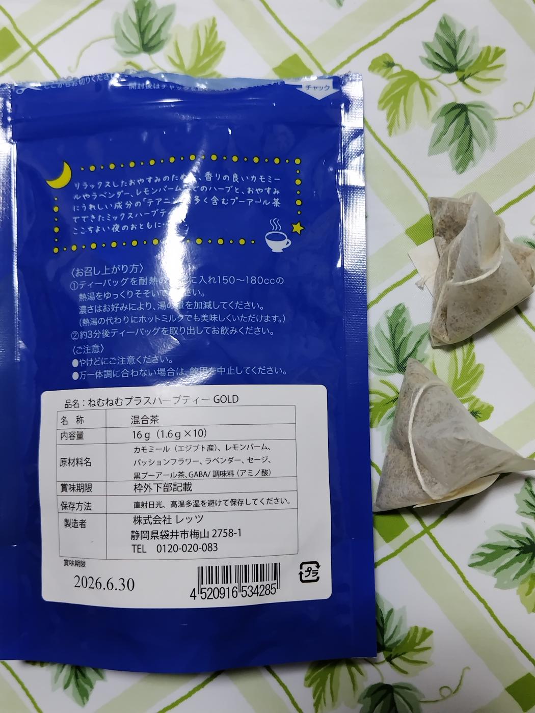 「ねむねむプラスハーブティー【GOLDタイプ】ティーバッグ」『株式会社レッツ(レッツお茶の店)』様より...