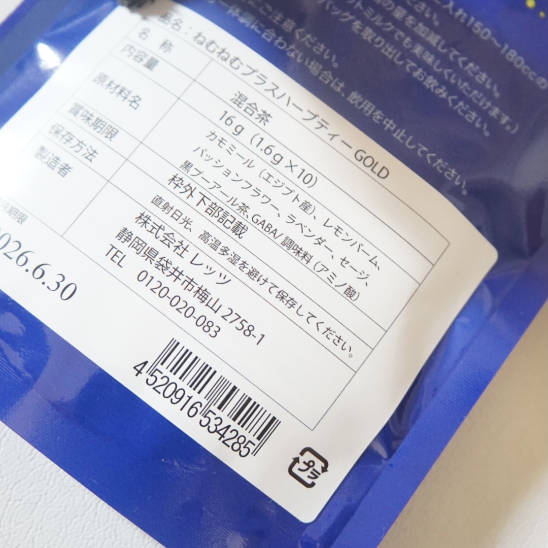 「ねむねむプラスハーブティー【GOLDタイプ】ティーバッグ」『株式会社レッツ(レッツお茶の店)』様より...