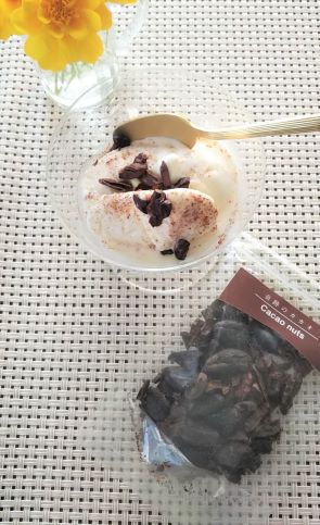 バニラアイスの甘さと少しほろ苦いカカオナッツの組み合わせが美味しいです。
