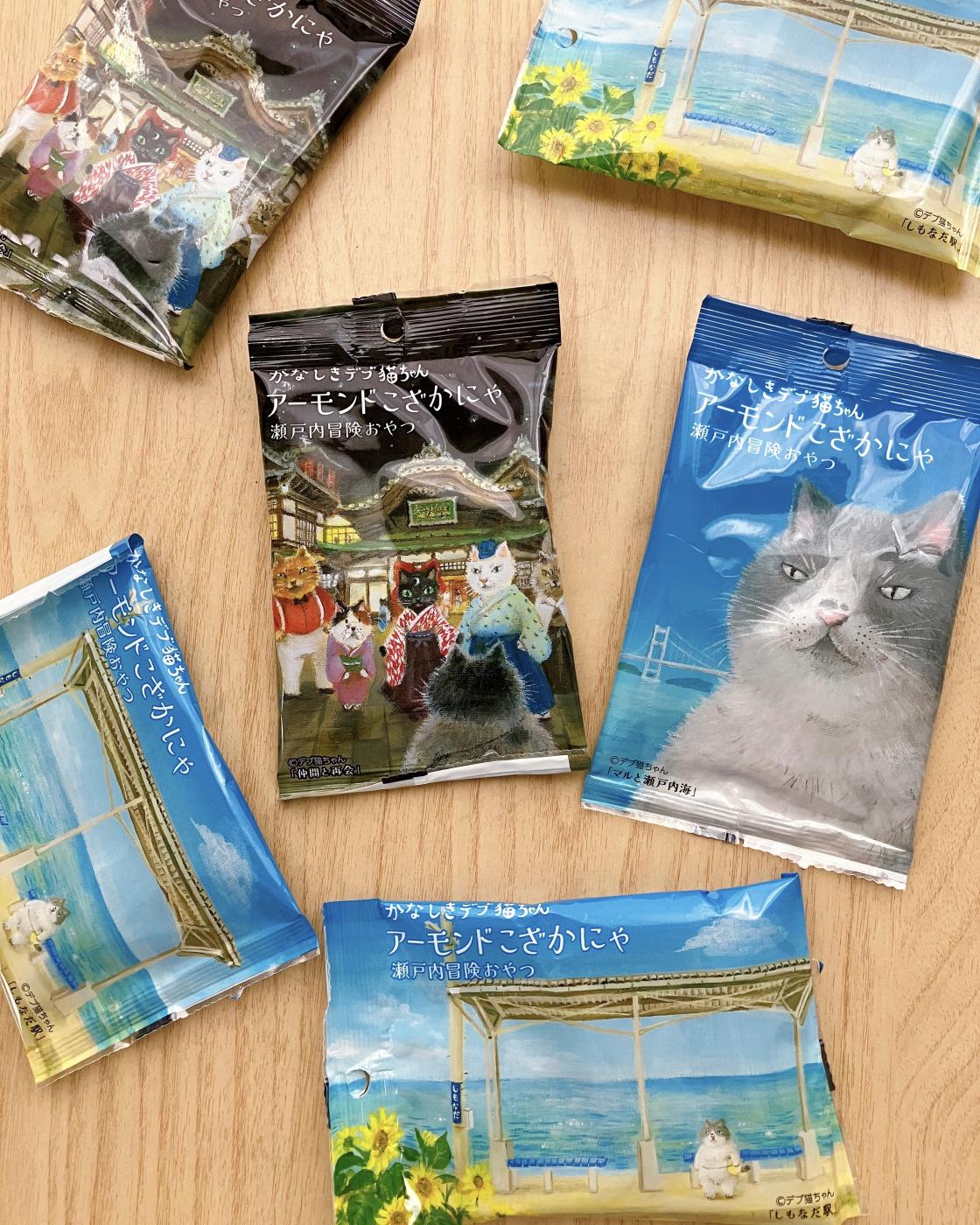 2018年から愛媛新聞で連載が始まった創作童話『かなしきデブ猫ちゃん』とコラボした、瀬戸内発のアーモンド小魚のおやつです🐟