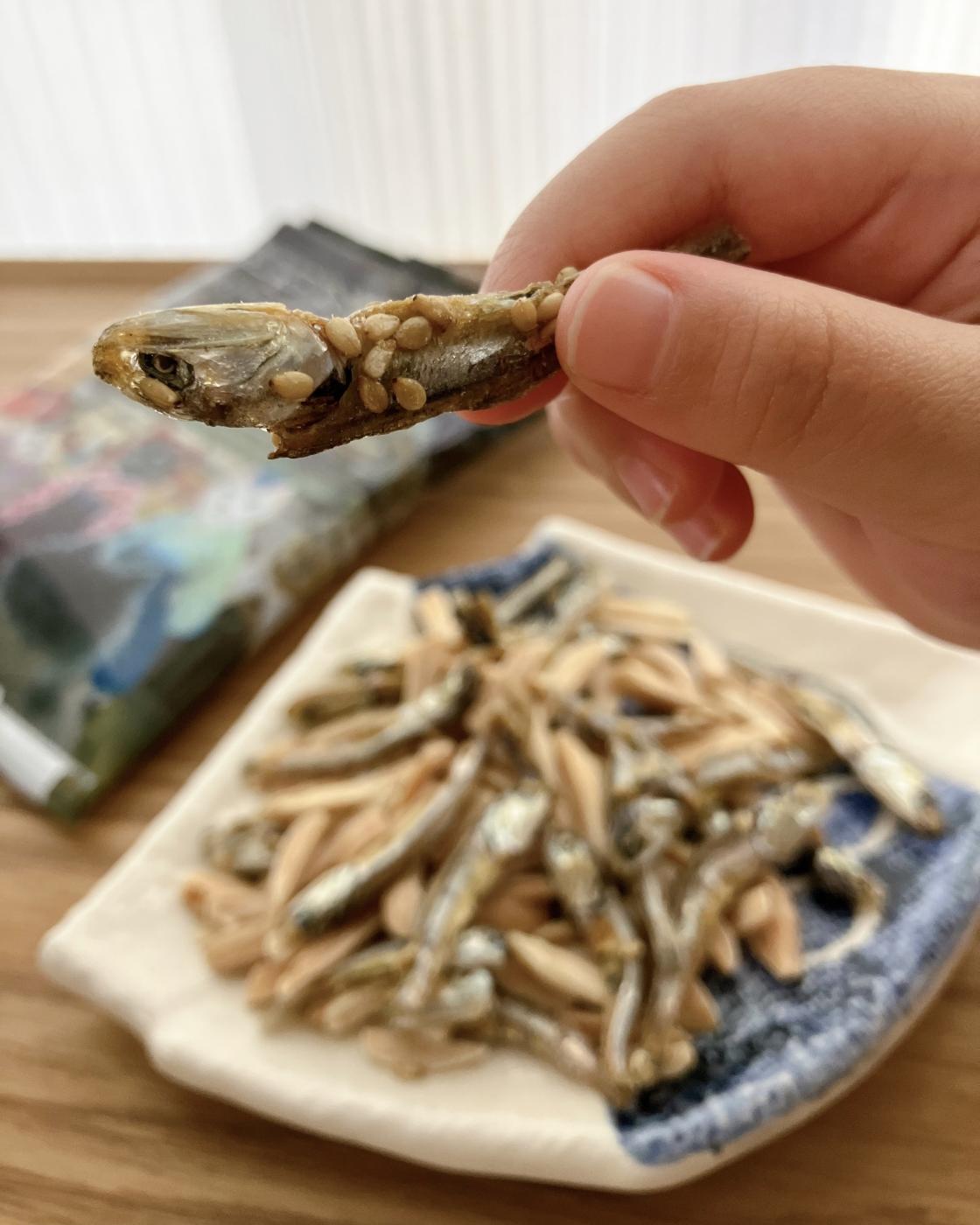 カルシウム・DHA・EPAなどが摂れる小魚に、ビタミンE豊富なアーモンド。