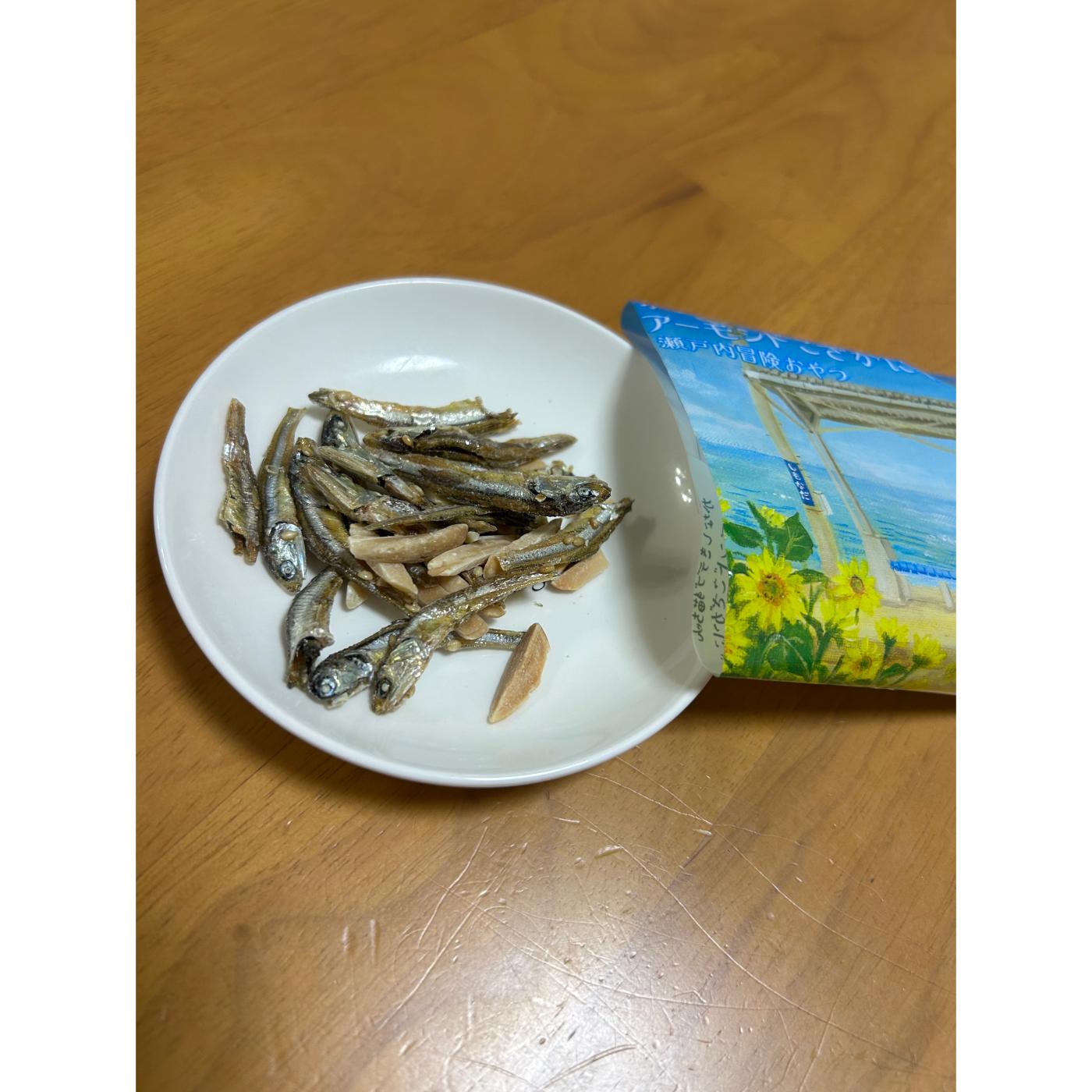 大きな瀬戸内産のカタクチイワシの小魚とアーモンドが入っていて、小袋なので食べやすいサイズなのもとても良いです。