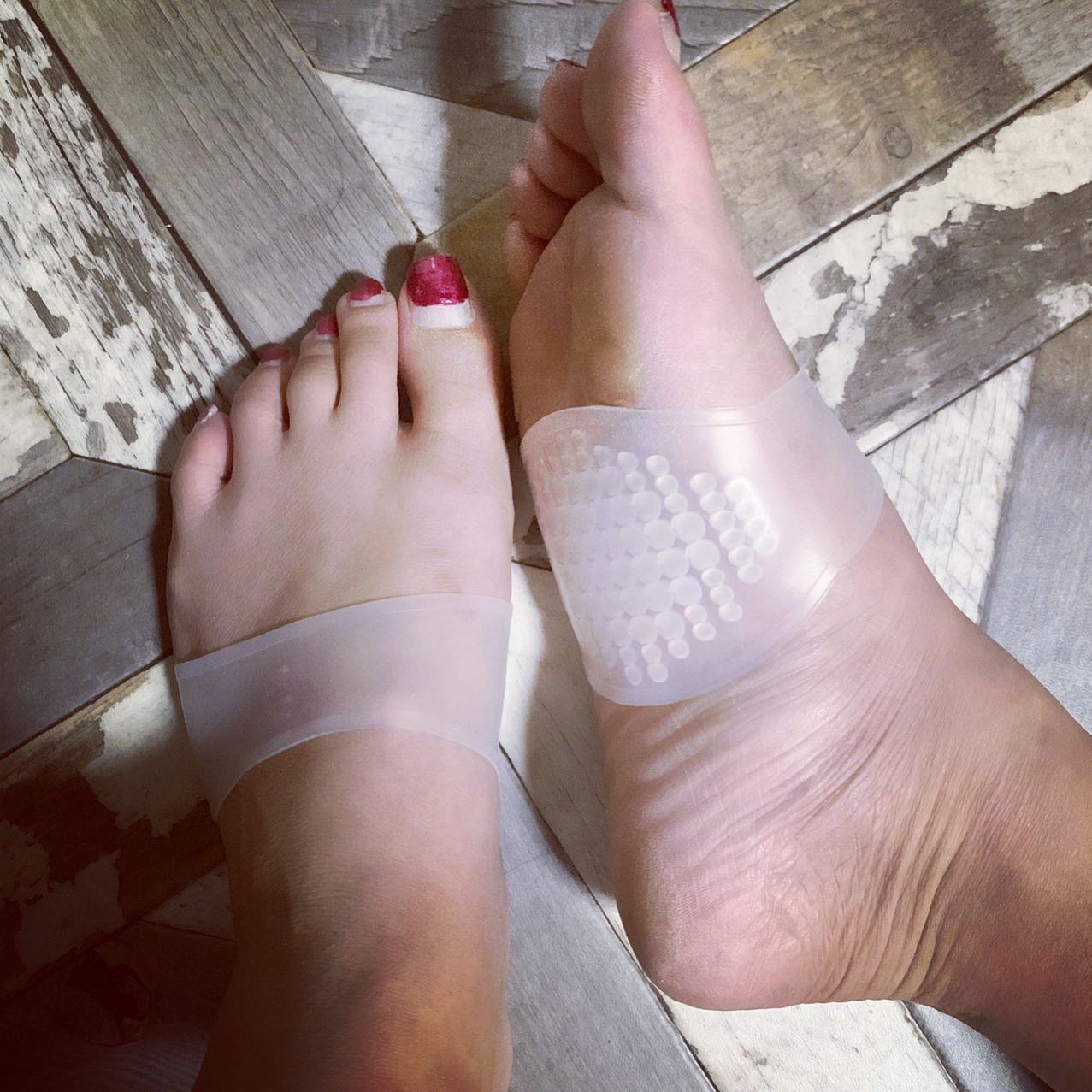 柔らかいシリコンで出来たシリコンパッドの底部の土踏まずの箇所に多数のイボイボが設置され、そのイボイボが歩くことにより土踏まずを刺激し足の血行を良くし足の健康を促すという仕組み。