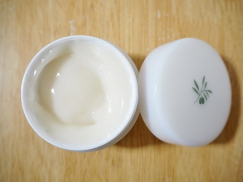 蓋を開けると、ベージュがかった色のクリームが入っています。