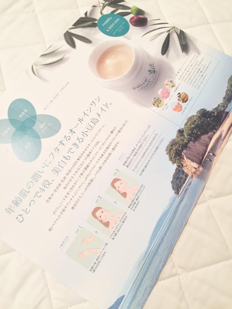 オリーブ果汁濃縮エキスなどの美容成分を配合したオールインワンクリームです! 白を基調とした清潔感...