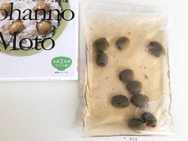 種抜きしたスペイン産オリーブ果実がそのまま果実を使った炊き込みご飯の素です。