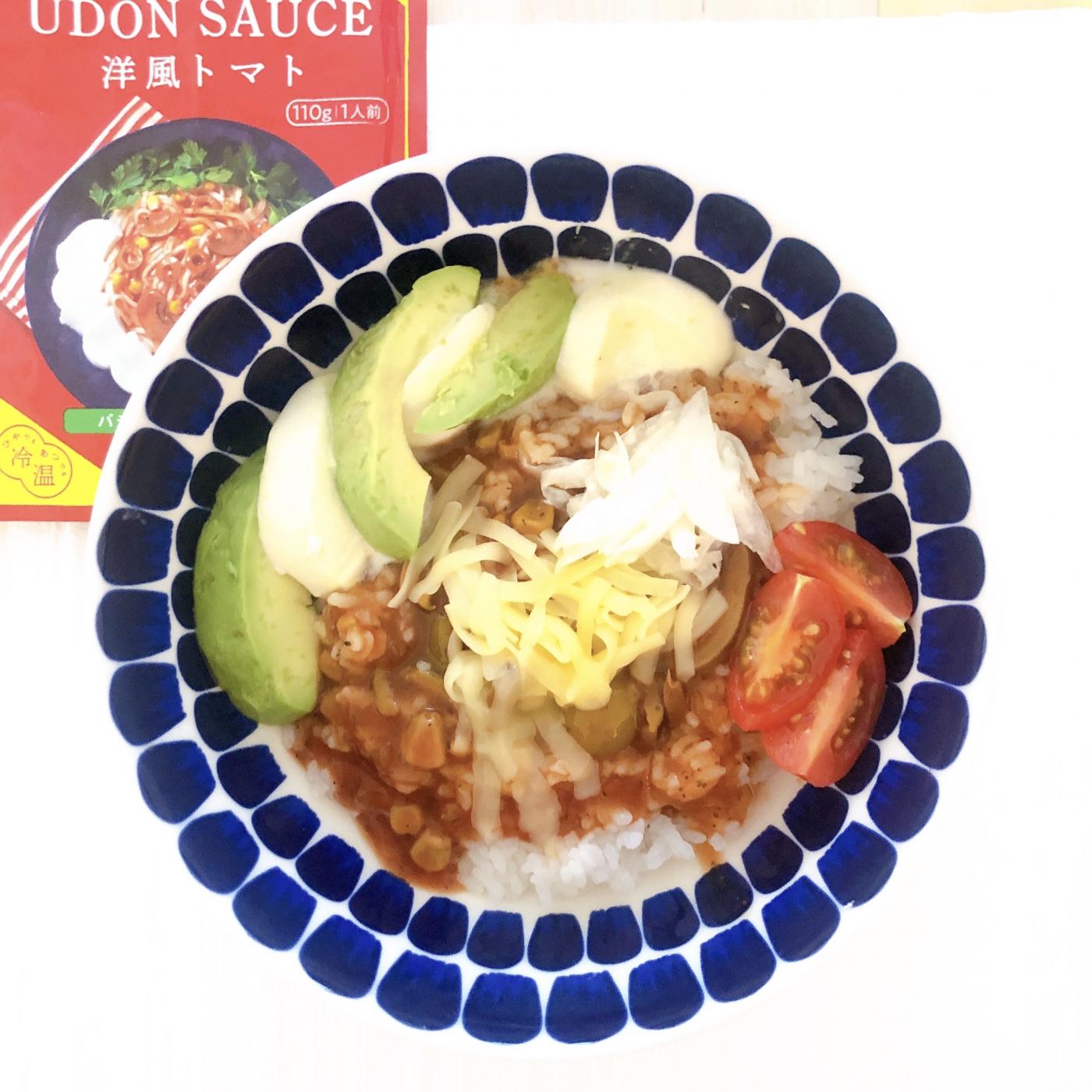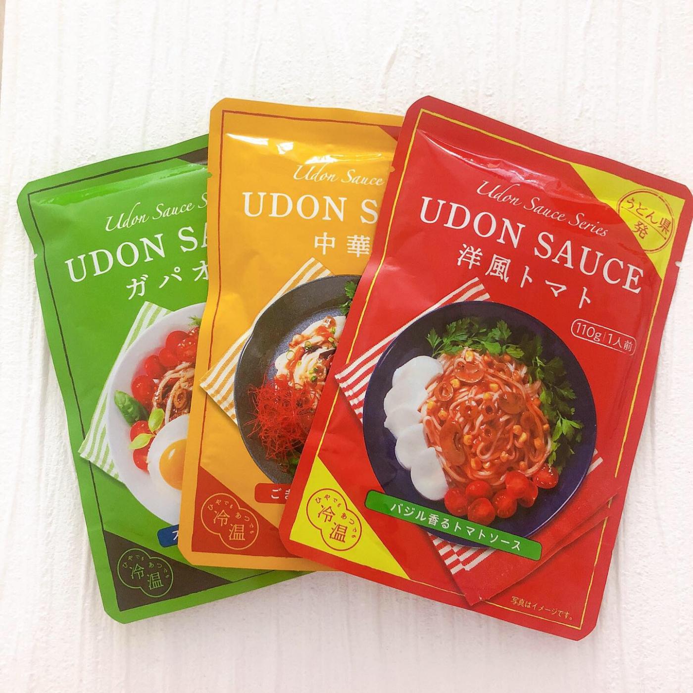 中華風、洋風トマト、ガパオ風の3種類があり、ソースを茹でたうどんにかけるだけで出来てしまう、うど...