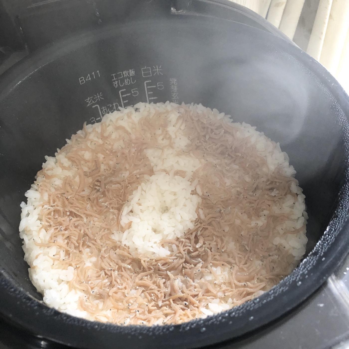 今回はこの「じゃこめしの素」しか使いませんでしたが、炊き込みご飯に入れる具、例えばタケノコ、にんじん、キノコなどを入れるともっと美味しくなるみたいです。