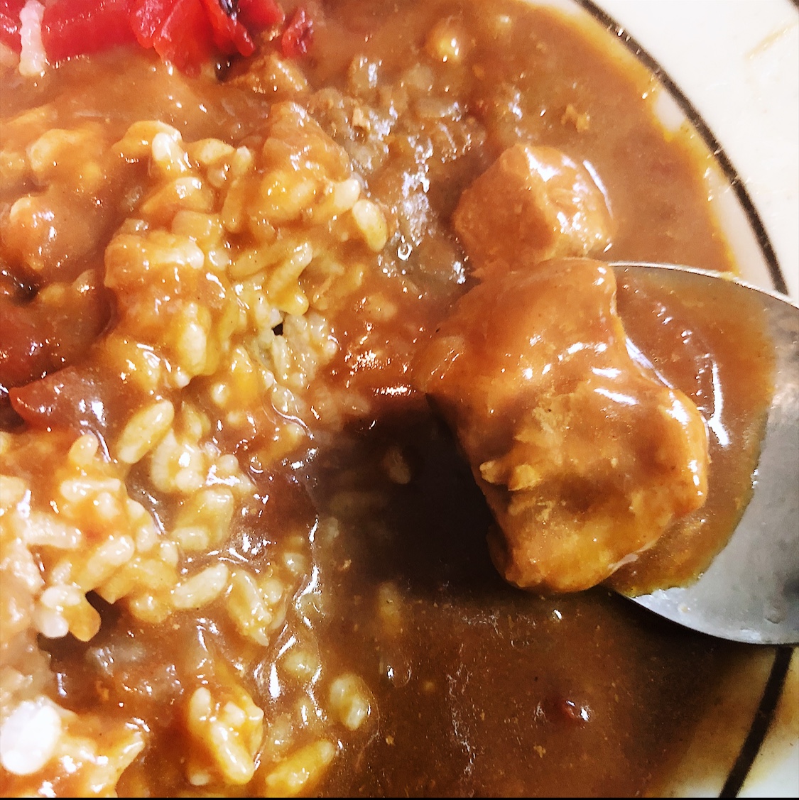 普通のレトルトよりもトマトの酸味が効いていてしっかりと丹念に作りあげられたのがわかります。また、しっかりとした赤身の旨味とさっぱりとした脂の甘みが味わえる 「オリーブ豚」を加えられててとってもまろやかなカレーです。豚肉がごろっと数個入ってます。酸味ばかりが効いているのではなく、隠し味に小豆島産醤油とオリーブ茶葉も使用されていて和のテイストもしっかりあるから日本人にも馴染みやすいお味だと思います。