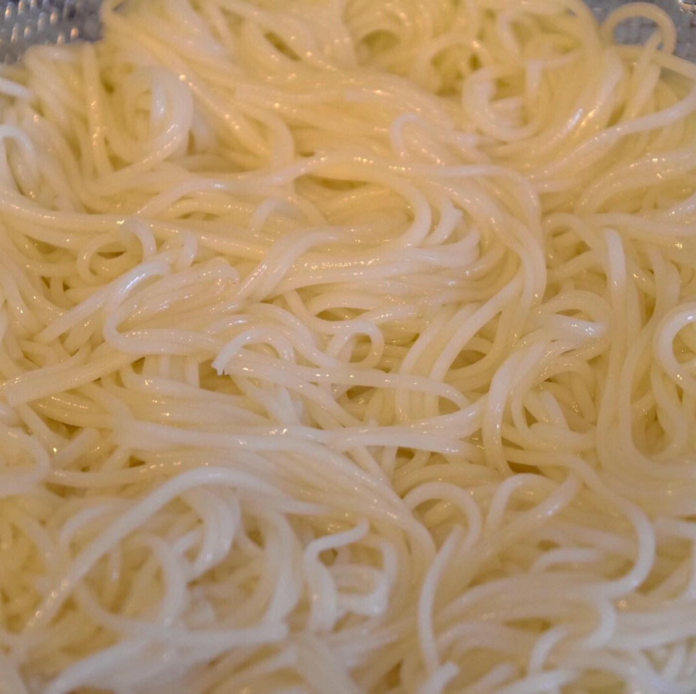 茹で上がってよく水洗いした後の、お素麺のツヤツヤの表面が食欲をそそります♪