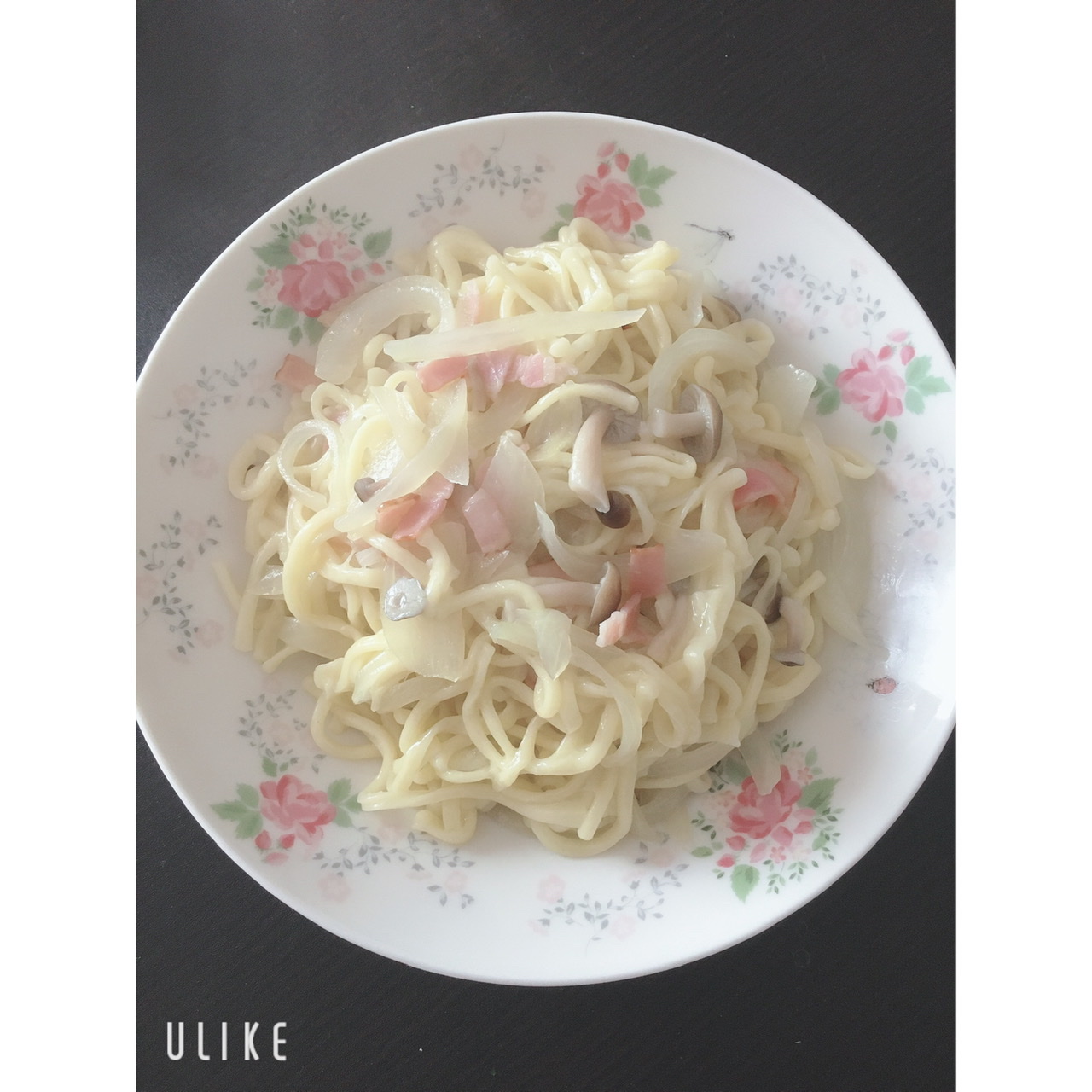 このてのべDEパスタを使ってしめじとベーコン、玉ねぎの和風パスタを作りました!