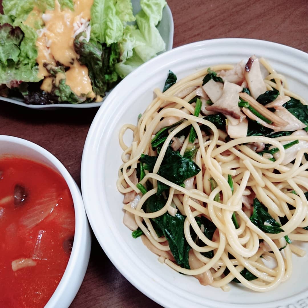 キノコとほうれん草、そしてバターと醤油の和風な組み合わせが抜群のお味?