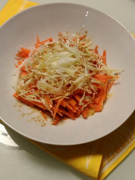 材料は、ニンジン キャベツに、チーズをトッピングして、混ぜ混ぜ