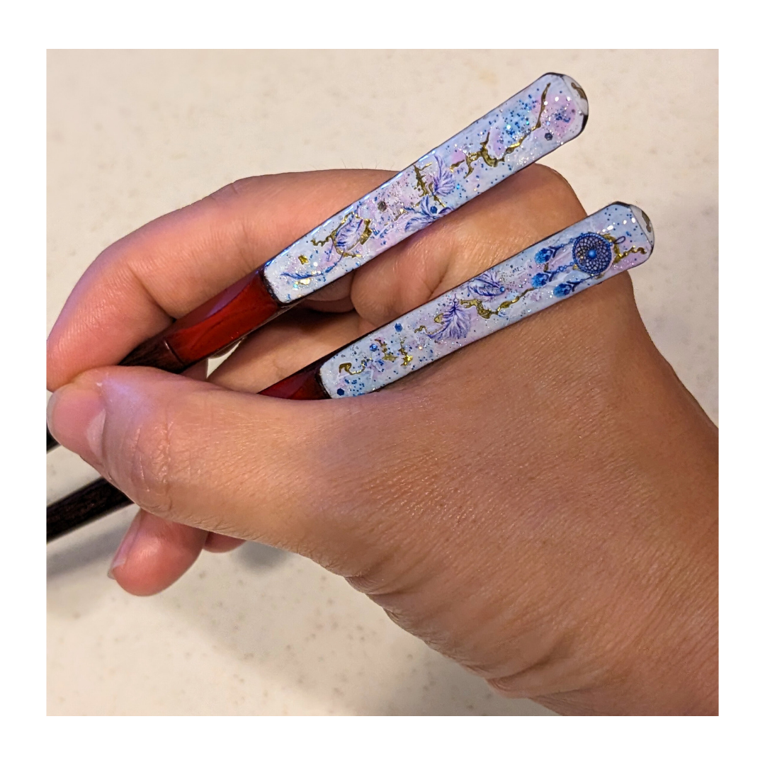 スティックアーティストの『Ma-Chan(まちゃん)』と『Mi-Chan(みちゃん)』が、あるふぁスティックの既製品(商品名:黄金)を加工してスティックアートを施した、存在感抜群のちょっとだけ贅沢なお箸✨