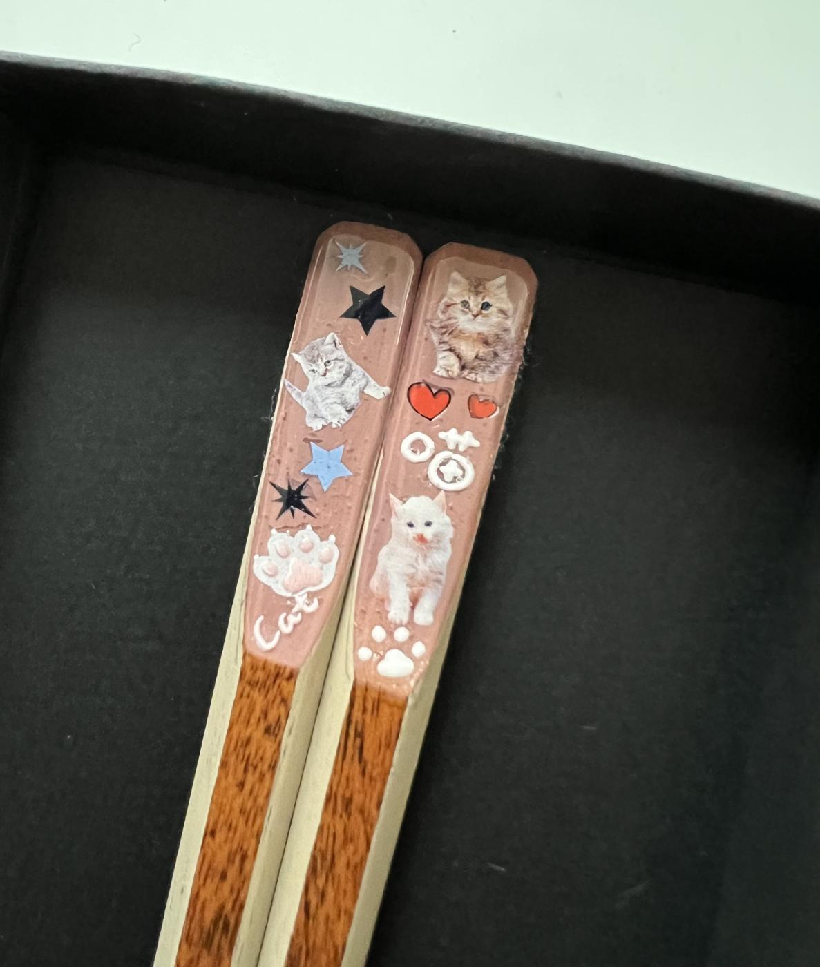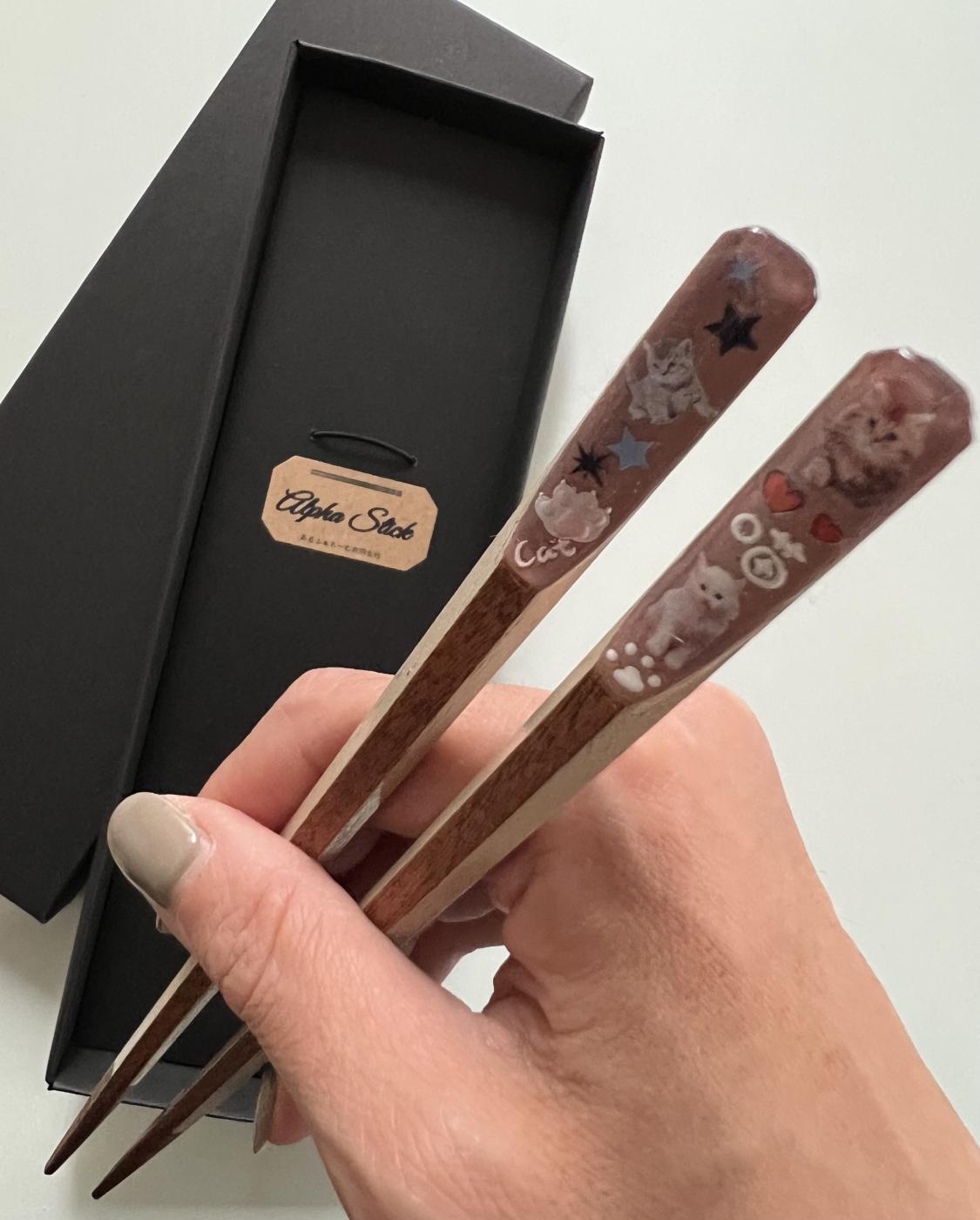 お箸の持ち手部分を手作業で3~6cm程カットし、そこに手作業でデザインを施して、最後は手作業で美しく仕上げるという、全工程をハンドメイドにこだわって作製するお箸のアート作品🥢