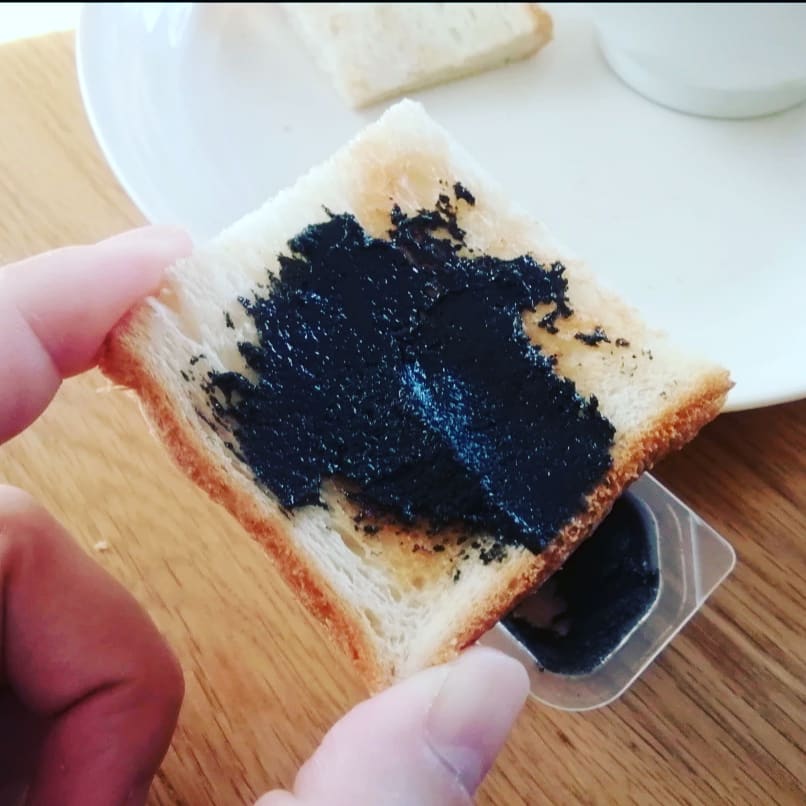 子どもたちもこの黒!が珍しくてテンションアップ!結構たっぷり塗って、いつもより朝の食パンがすすんでいました◎