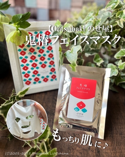 Ontsubaki のせ屋の鬼椿フェイスマスク を早速試しました 五島産つばき油配合。合成香料、着色料...