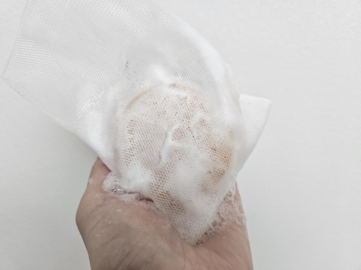付属の泡立てネットを使えば、少量でもあっという間にモコモコの弾力泡が完成🎵