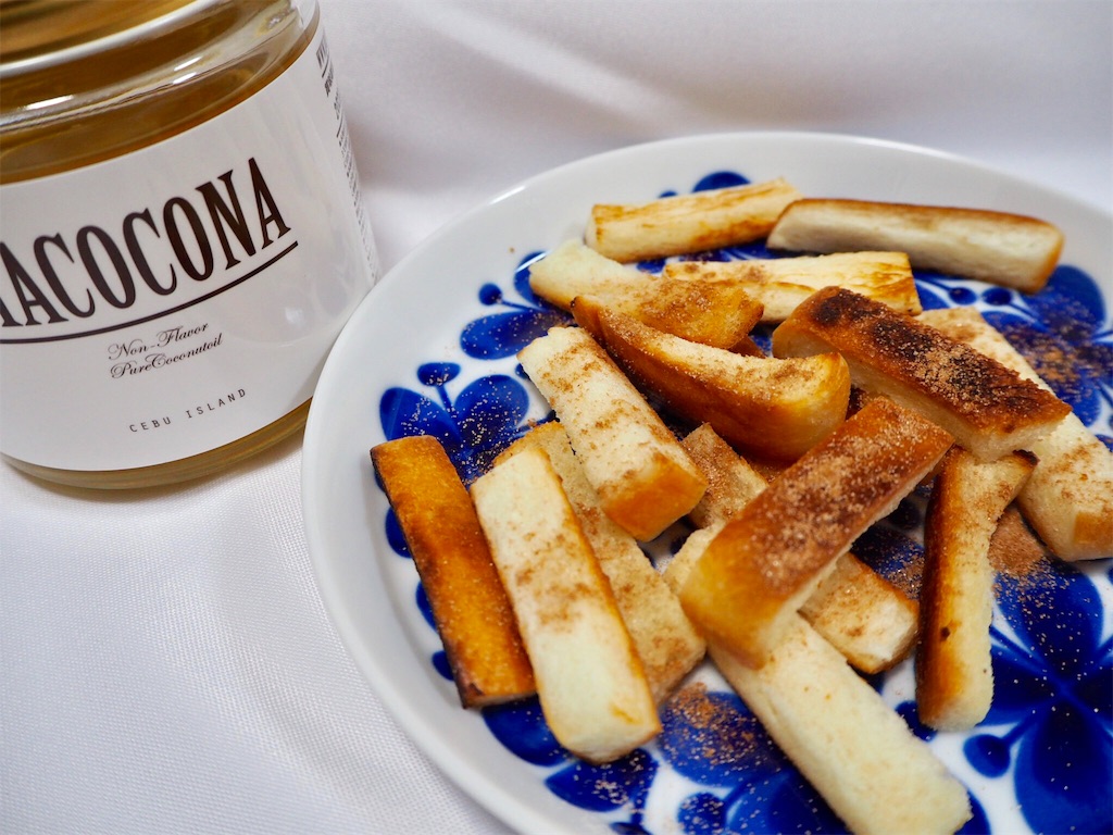 シナモンシュガーを振ってみましたがそれもまた美味しく、PIACOCONAとの相性もよかったです。