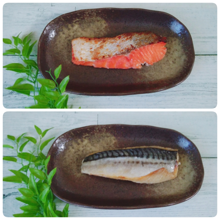 サバの塩焼き2P、鮭の塩こうじ焼き2P届きました。