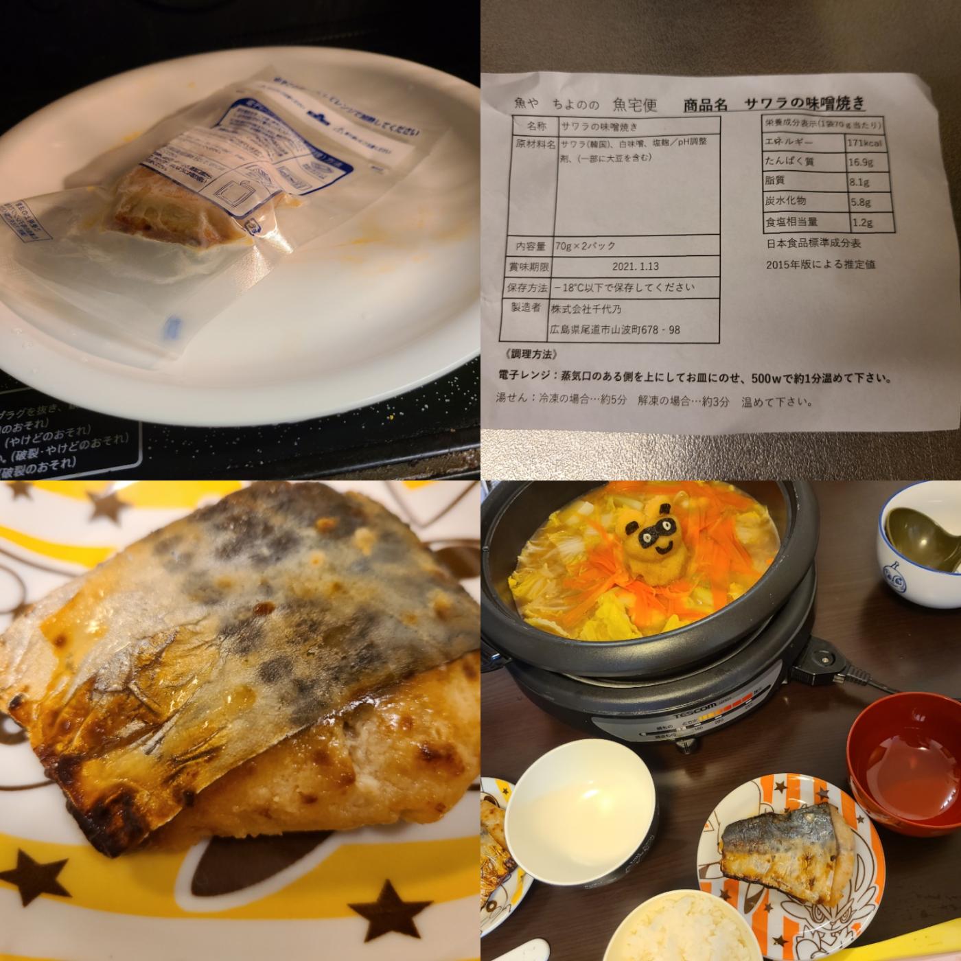 家に届いたのは、2種類で、サワラの味噌焼きとサバの塩焼きです。