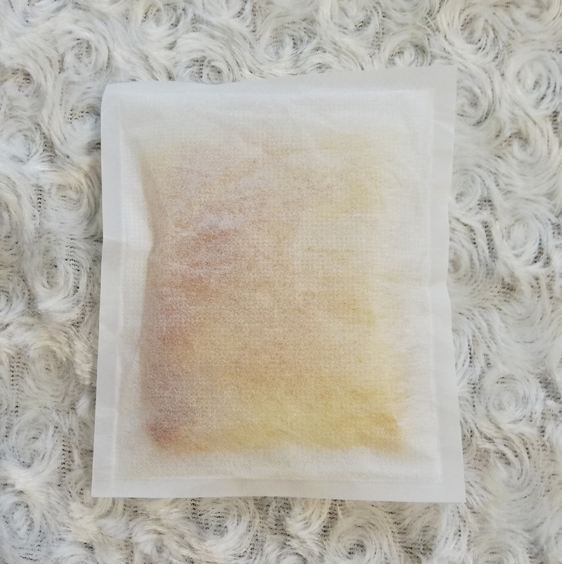 手でゆっくりと押して中の液体を割ったら、すぐに中が黄色く変色してきました。