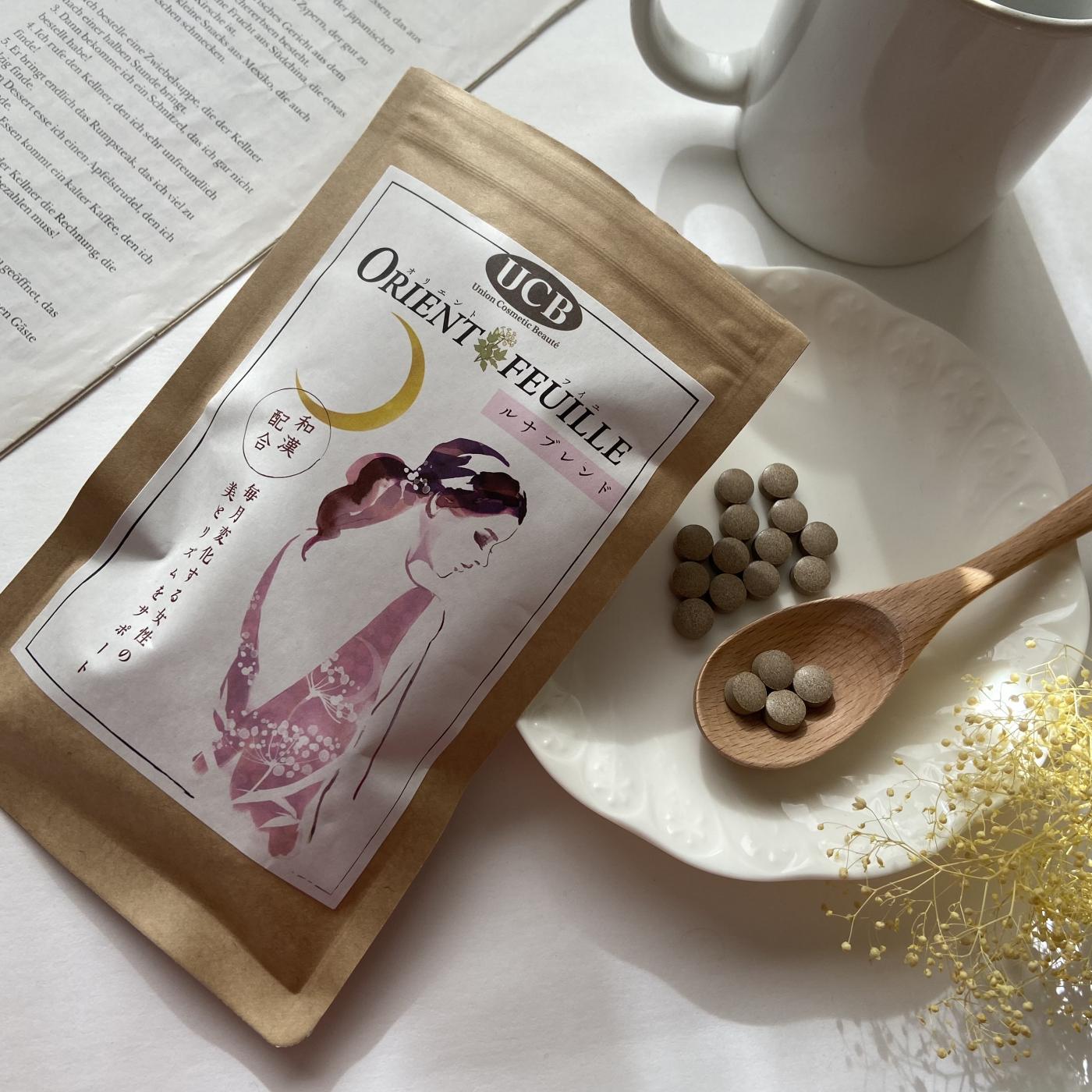 『オリエントフイユ ルナブレンド』は、PMSに特化した女性のためのサプリメント。自然の恵みたっぷりの体にやさしい和漢が使われています。